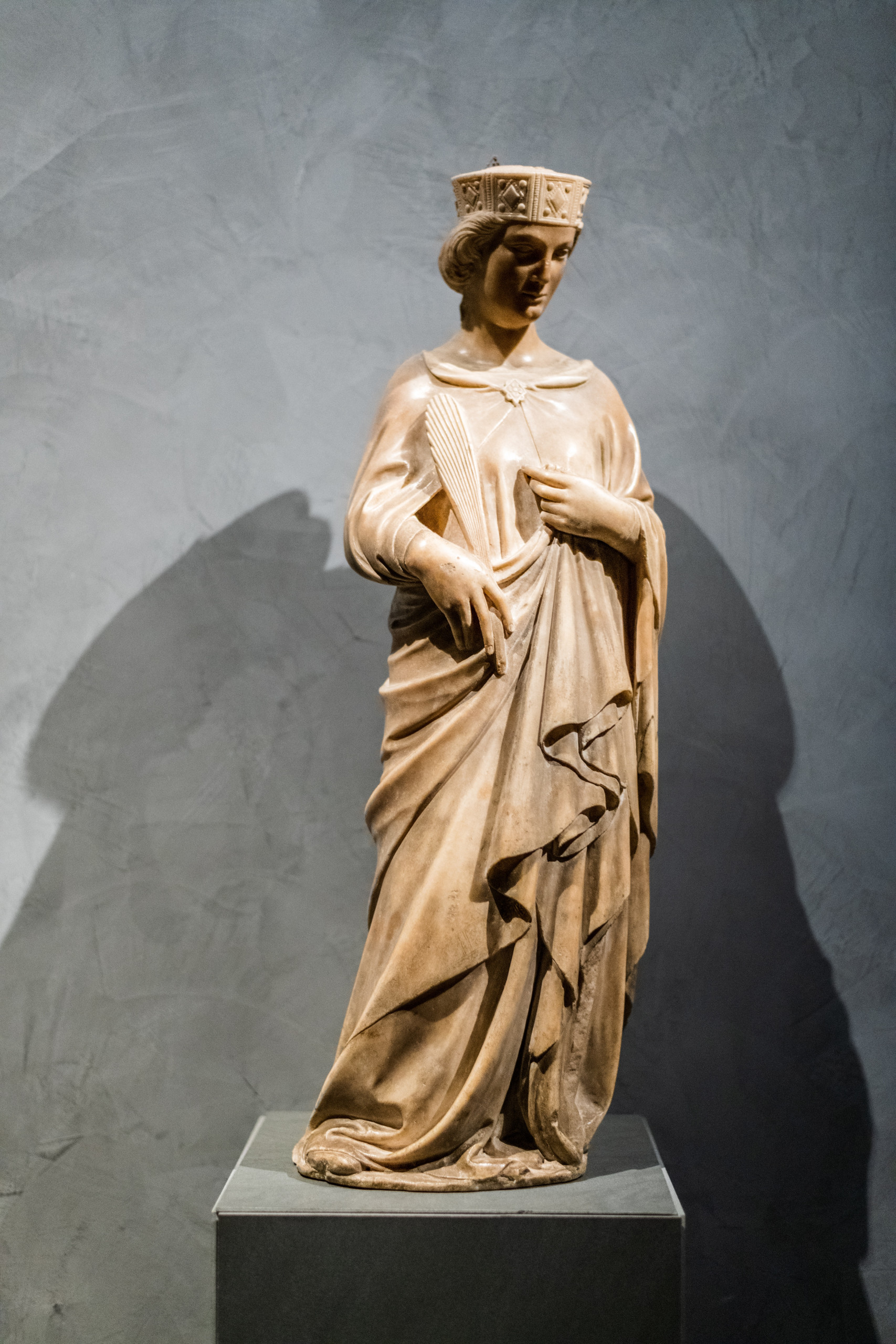 Reparata, patron saint of Florence, with crown and palm frond. Martyr.